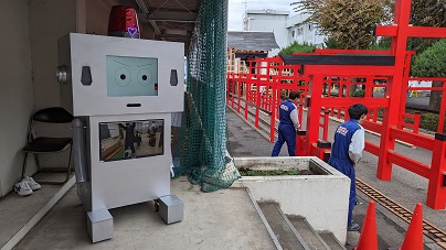 今回製作されたのは、正門から続くアーチの中を走る、ミニ電車(SPACIA X)乗車体験の案内ロボットです。