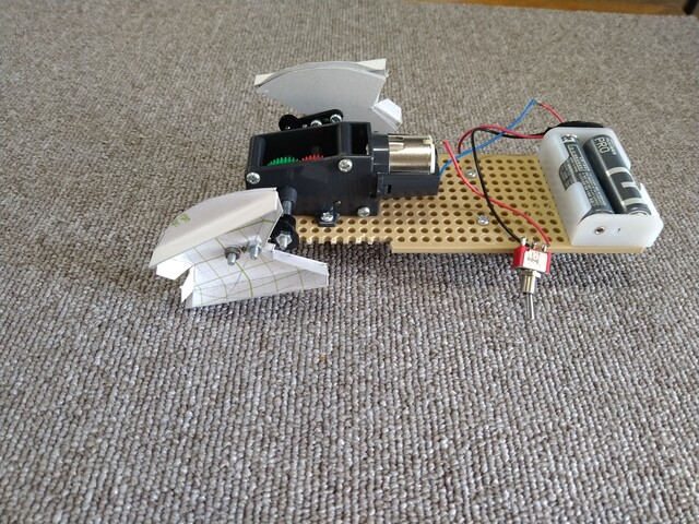 今回は2週でモータでギヤボックスを利用してするクランク機構に取り付けたオリジナルの足で歩くロボットを製作しました。