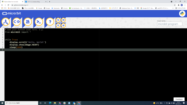 オンラインエディタ https://python.microbit.org/v/2